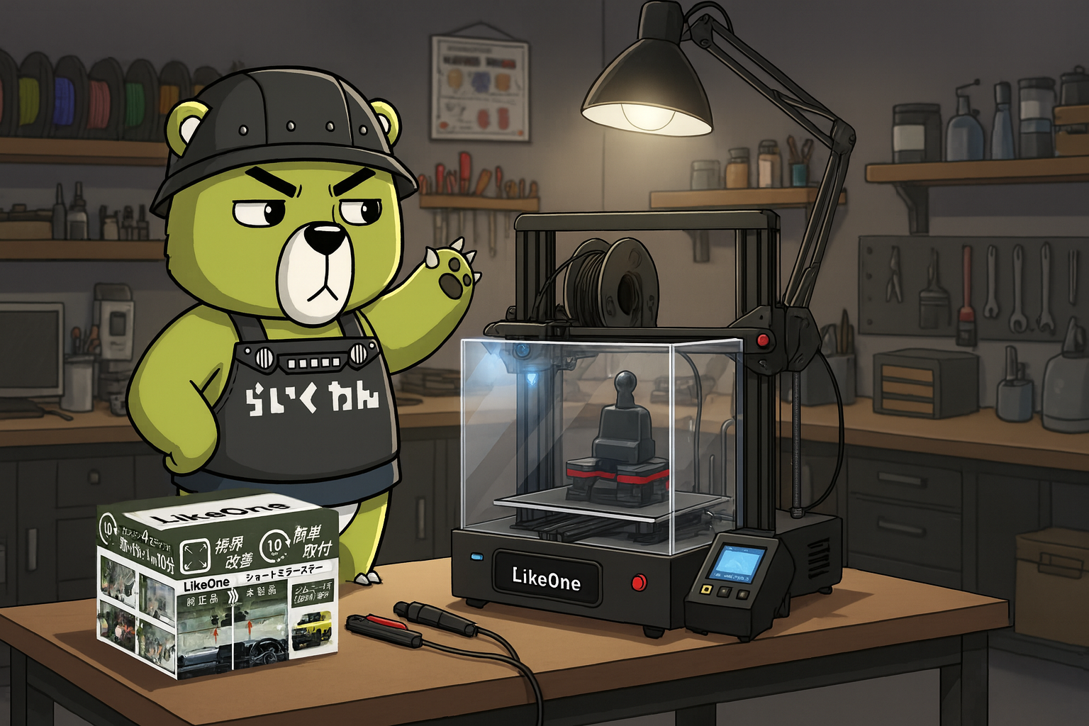安価な3Dプリンター製のパーツには、どうしても強度面での不安や、積層痕(印刷の跡)によるチープさ、そして走行振動によるミラーのブレや緩みが発生しやすいという課題が残ります。